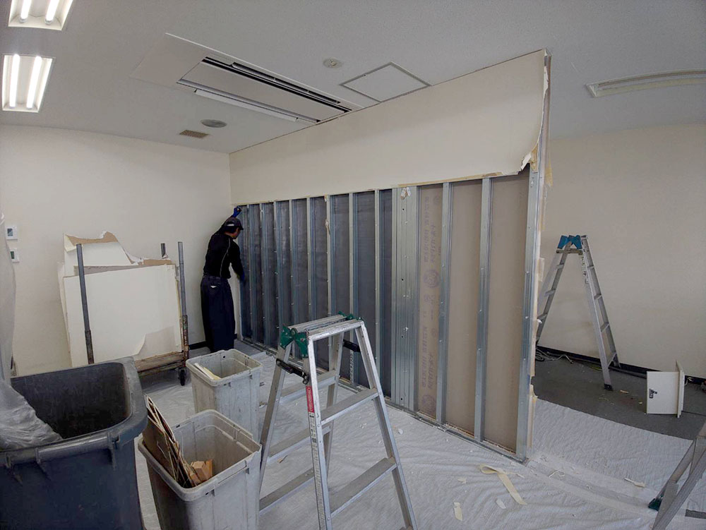 CT室は通常の部屋の造作とは異なりますので、残す壁や天井等に気をつけながら作業いたしました。